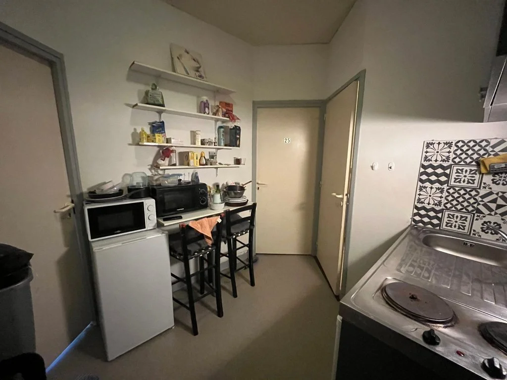Nous disposons de 14 studios de 20m². Ils sont meublés et équipés (plaques cuisson et réfrigérateur). Tous les studios ont une cuisine et une salle de bain. Le loyer est de 500€.