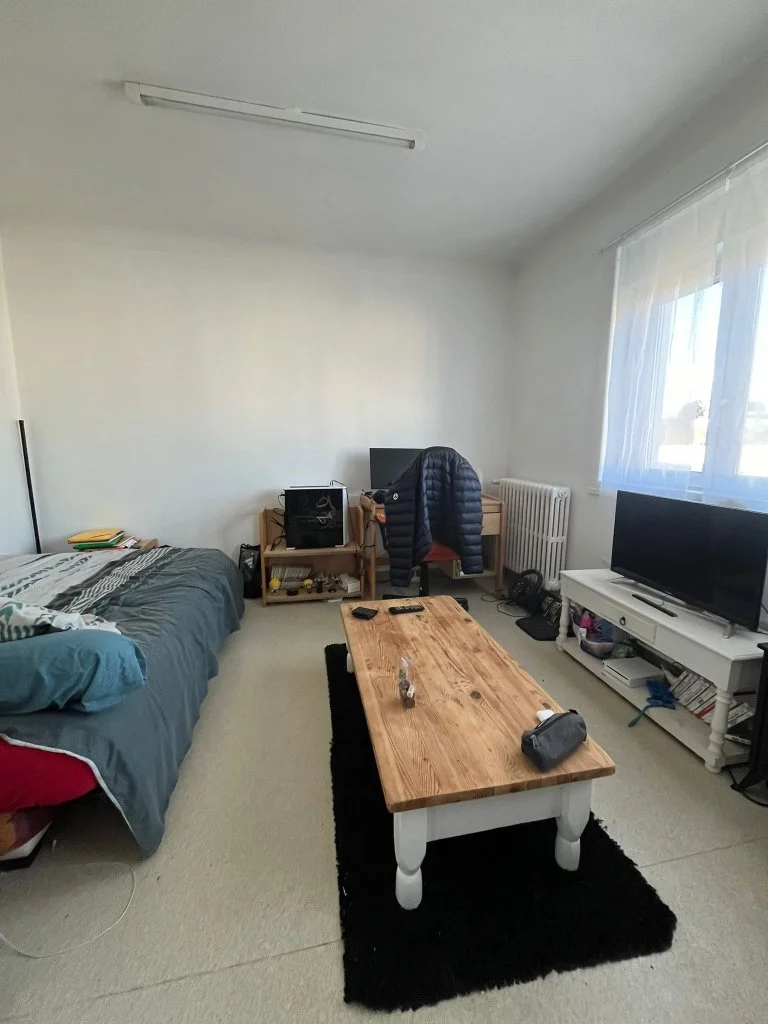 Nous disposons de 3 chambres associées non-mixtes. Elles sont meublées et se partagent une cuisine et une salle de bain. Chacun dispose de sa chambre. Le loyer est de 370€.